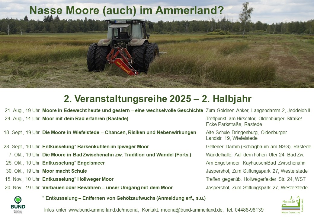 Sich sportlich gemeinsam mit dem Rad zum Frühlingsbeginn in der Natur bewegen: Die abwechslungsreiche ca. 3‑stündige Querfeldein-Tour führt auf Wegen der Geest- und Moorlandschaft des Einzugsgebietes des Jadeflusses, entlang von ortsprägenden vernetzten Fließ- und Stillgewässern. Themen aus dem Klimaschutzkonzept der Gemeinde Rastede, die auf der Tour zur Diskussion anregen können: • Moorschutz als Klimaschutz • Klimafolgenanpassungs-Konzept • Entsiegelung,...